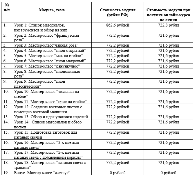 1.3. Стоимость каждого модуля онлайн-курса и групповых занятий: